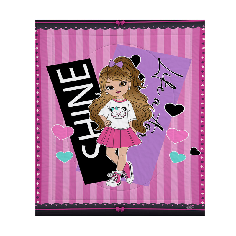 تصویری شاد، زیبا و پر از زندگی از دختر کارتونی زیبا در فضایی لطیف با رنگ صورتی و بنفش که نظر نوجوانان و دخترها را خیلی به خود جلب می کند ترکیبی از رنگ ها و حس دوستی و شادی را تداعی می کند. محیط اتاق خواب با این روتختی قطعا محیطی جذاب خواهد شد. این روتختی یک موکاپ است و طرح نهایی ممکن است کمی در جزئیات متفاوت تر باشد.
