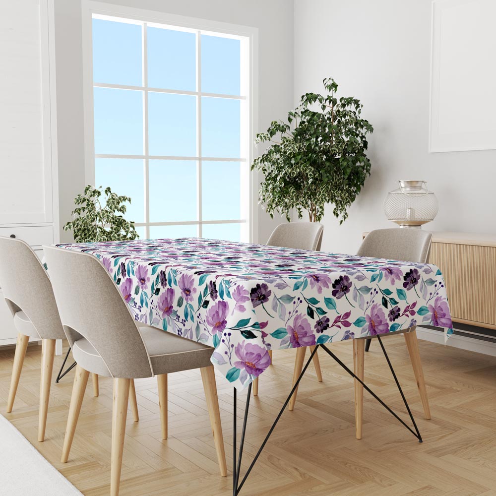 سفره و رومیزی پارچه ای مدل گل های بنفش RR0005