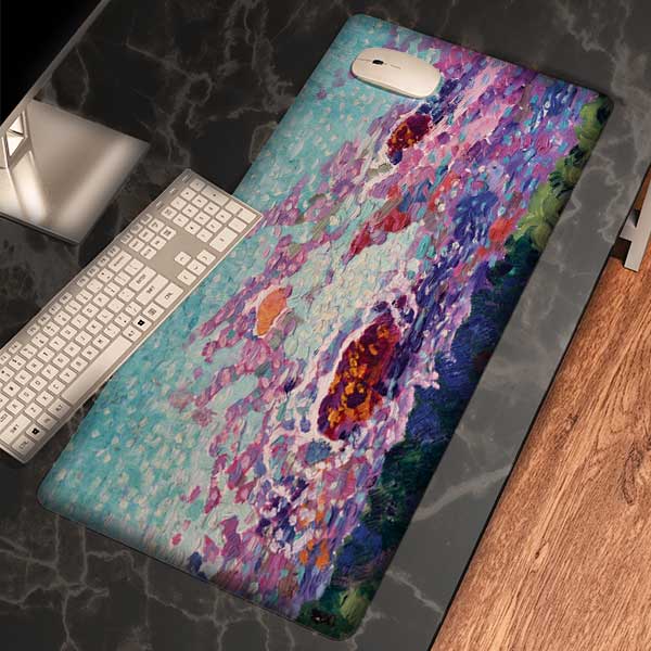 ابعاد و رنگ موس پد باید متناسب با فضای محیط باشد. آبان مارکت برای این منظور دو لایه نمد لطیف با ضخامت مناسب در بالا و پایین سطح موس پد استفاده می کند که همزمان با ایجاد حس نرمی و لطافت، عملکرد جذب رطوبت عالی و طرح چاپ شده ضد لغزش (آنتی اسلیپ) در پشت محصول و همچنین تثبیت کننده عایق پی وی سی در بین دو لایه قبلی باعث عدم تبادل رطوبت و سرما و گرما گردیده و با ایجاد بستری ایده آل برای اجرای چاپ دیجیتال کیفیت چاپ مورد نظر را تضمین می نماید.